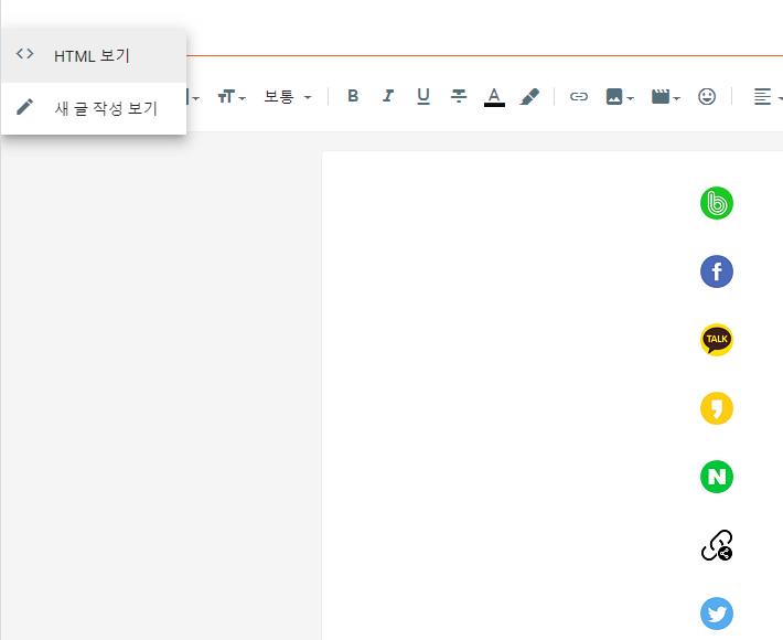 위와 같이 <> HTML 보기를 눌러서 html 페이지로 가면 우측의 이미지처럼 html이 나옵니다.