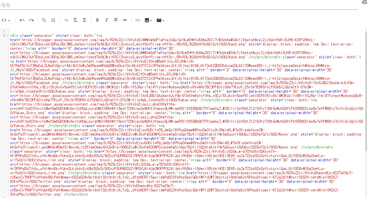 구글 블로그(블로거)는 SNS 공유가 카카오나 네이버는 존재하지 않습니다. 그리고, 핀터레스트나 다른 외국 사이트들의 공유 버튼만 있습니다. 그래서, 네이버블로그, 네이버카페, 네이버밴드, 카카오스토리, 카카오톡, 페이스북, 트위터, 그리고 링크복사 버튼을 만들어 보겠습니다.