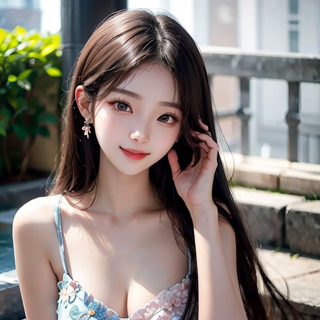 "20 year old korean girl, korean pop idol style, beautiful face, smile"