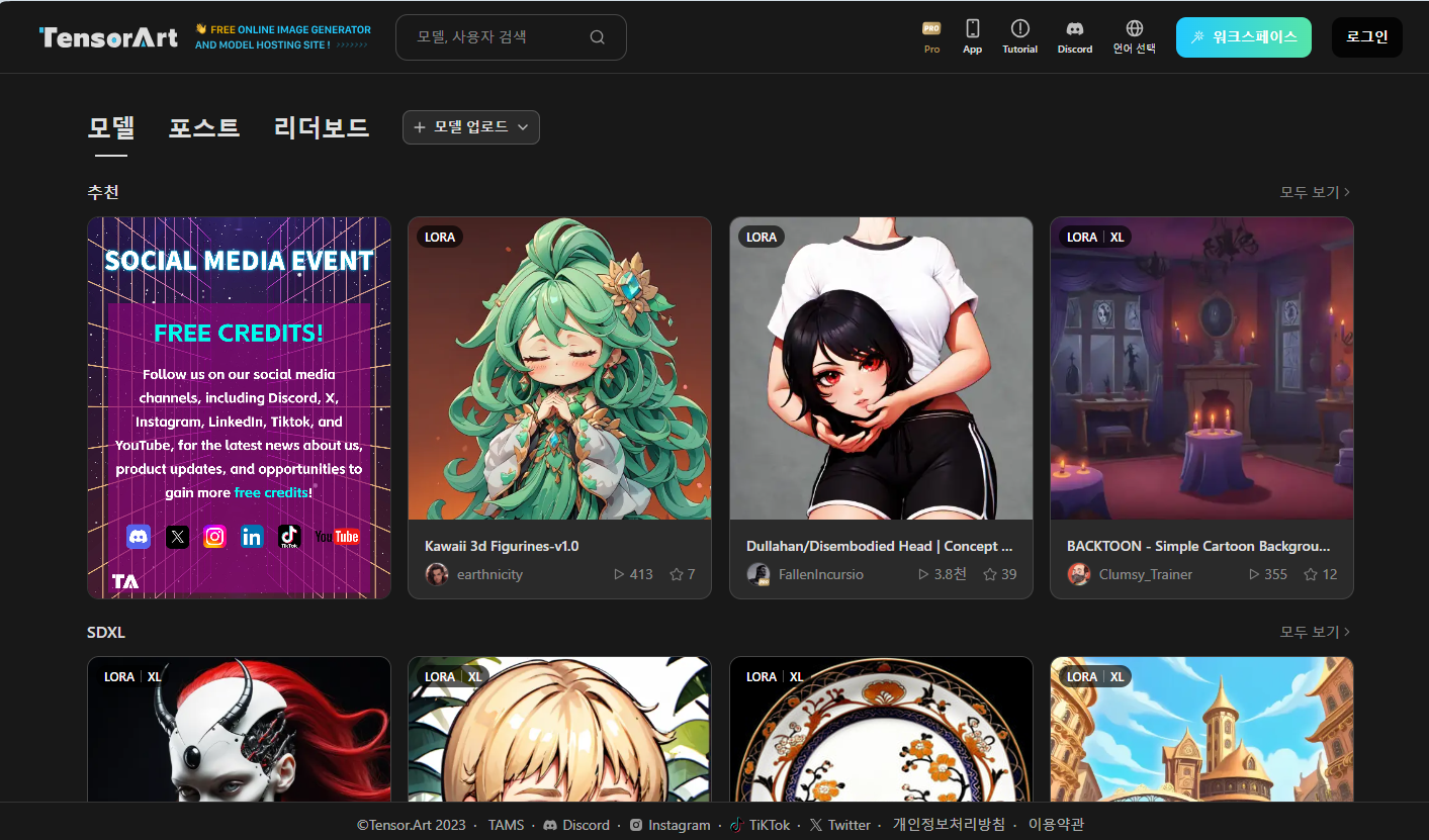 오늘 소개해드릴 사이트는 Tensor Art라는 AI 사이트입니다. 당연히 무료로 이용하실 수 있습니다.