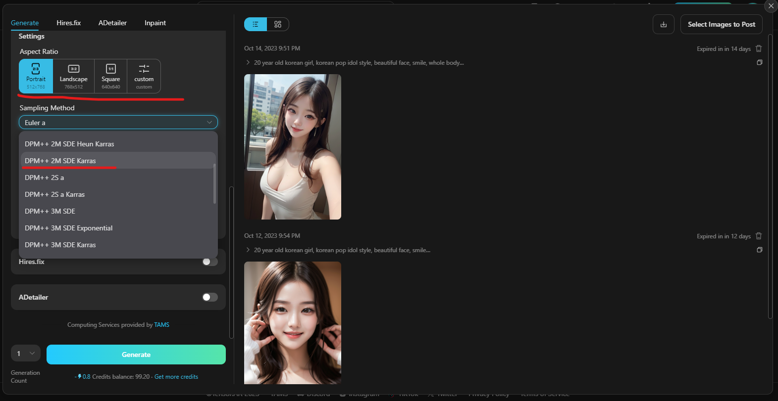 만약 이미지 품질이 더 중요하다면 DPM++ SDE Karras를 사용해 보시는 것도 좋습니다.